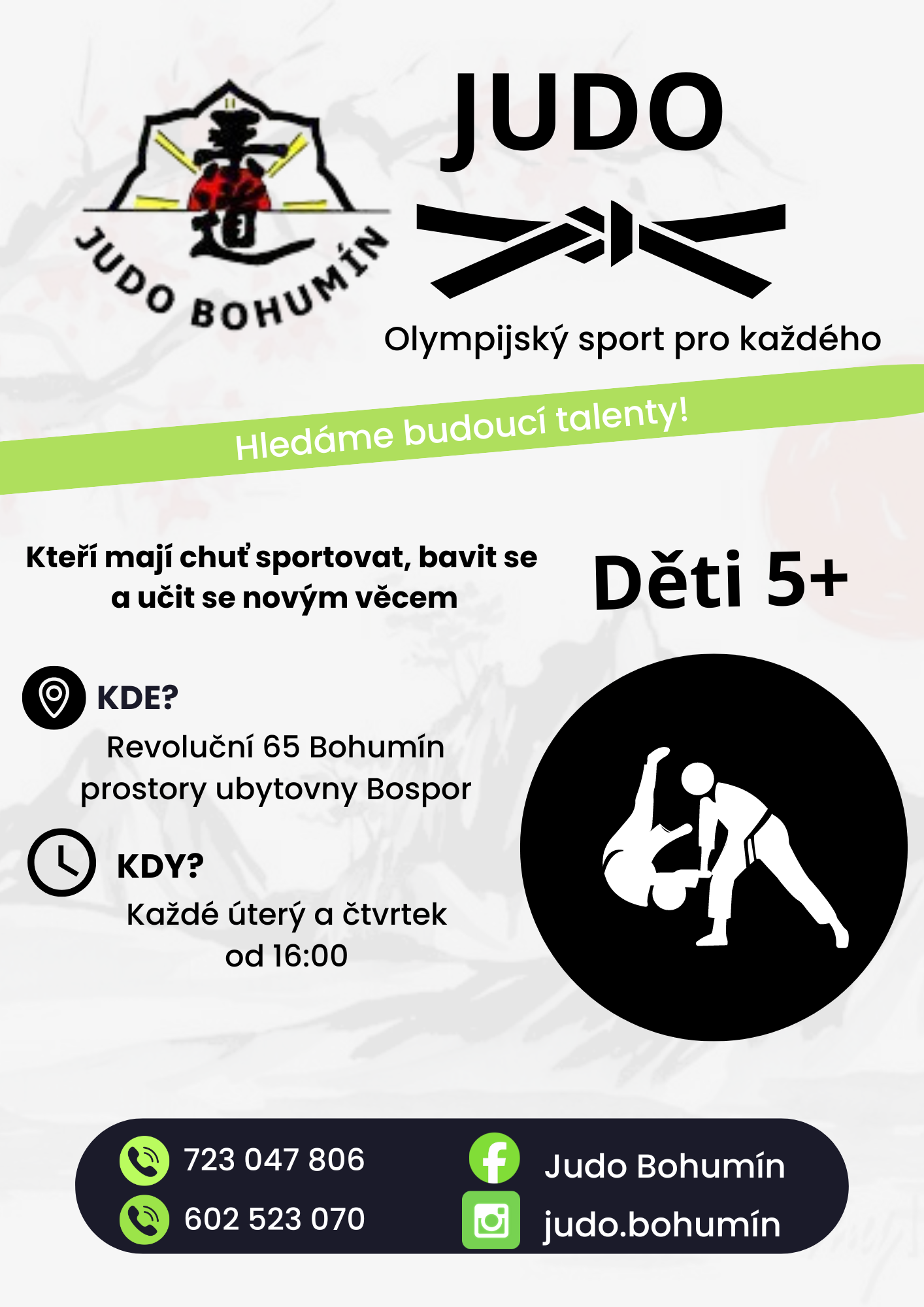 Jsme nadšení, že Vás můžeme pozvat na naše tréninky juda, které se konají každé úterý a čtvrtek. Tréninky jsou rozdělené do různých časových bloků podle věkových kategorií. Pro děti začínáme v 16 hodin, kde se zaměříme na základy a rozvoj základních technik a pohybových dovedností. Žáci začínají v 17:00 hodin, kdy kromě techniky klademe důraz i na kondiční přípravu. Dospělí mají své vyhrazené tréninky od 18:30, kde se zaměřujeme na pokročilé techniky a zlepšení fyzické kondice. Přijďte mezi nás na adresu Revoluční 65 v Bohumíně a zažijte skvělou atmosféru plnou sportovního ducha a přátelské komunity.